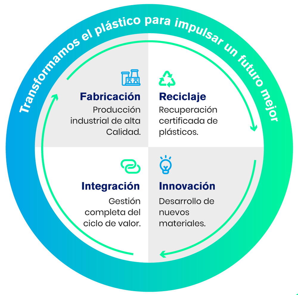 Integramos fabricación de plástico, reciclaje y desarrollo innovador para impulsar soluciones industriales responsables y competitivas.